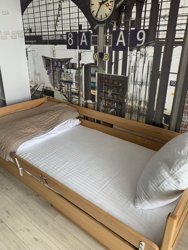 У спальні встановлене двоспальне ліжко з ортопедичним матрацом Comfort Lux середньої жорсткості, який забезпечує правильну підтримку хребта та комфортний сон.